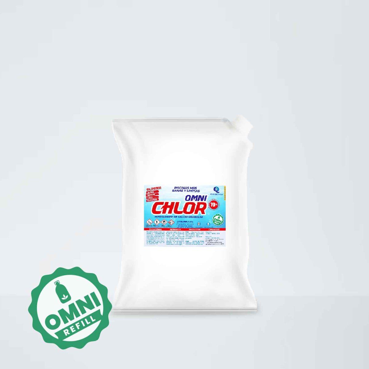Comprometidos con el medio ambiente Omniquimica lanza su pack Refiil de cloro al 70 bolsa pack por 5 kilogramos