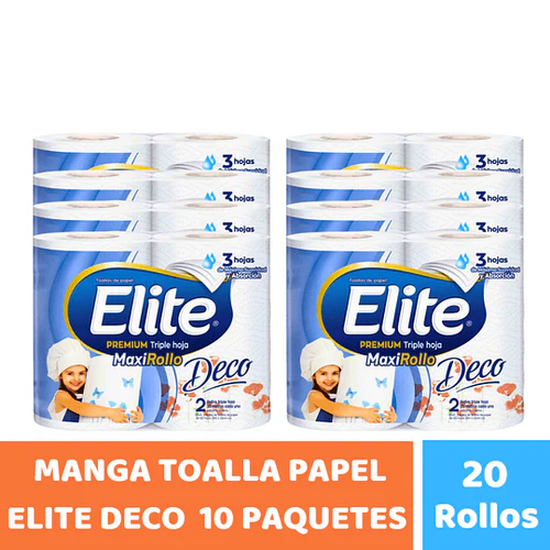 Manga Toalla Papel Elite Deco Triple Hoja 20 Rollos 10 Paquetes